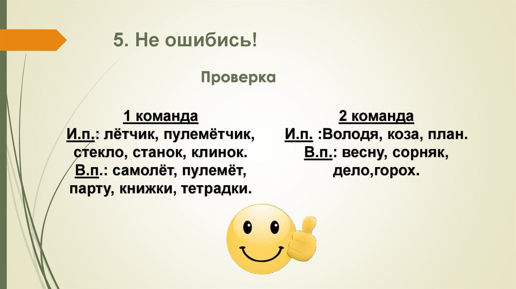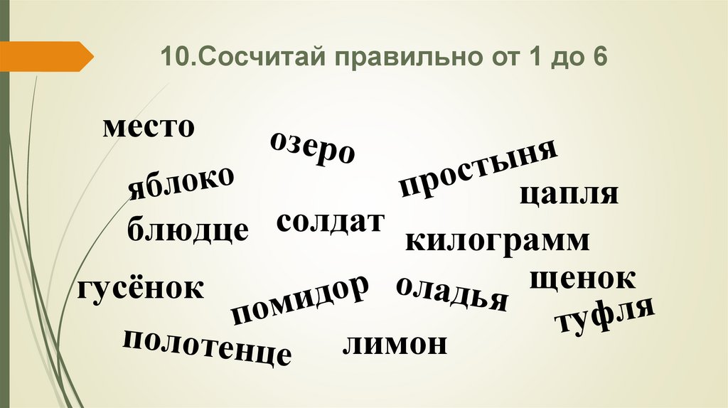 Для справок: 5 яблок, мест, озёр, помидоров, солдат, простынь(литер.)