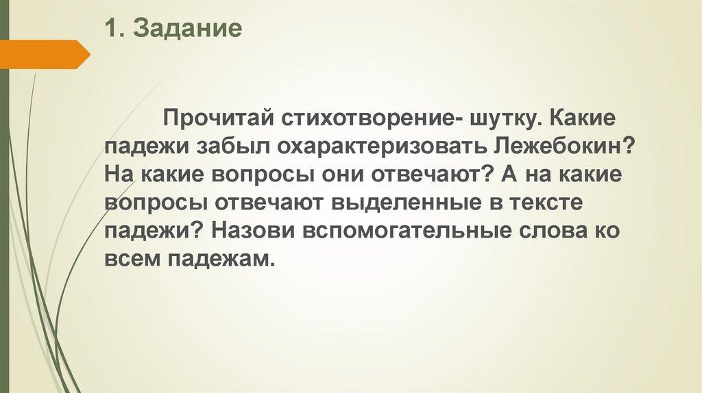 1. ЗаданиеПрочитай стихотворение- шутку. Какие