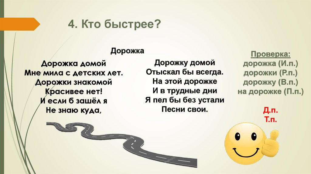 Нужно определить падежи слова ДОРОЖКА и указать,