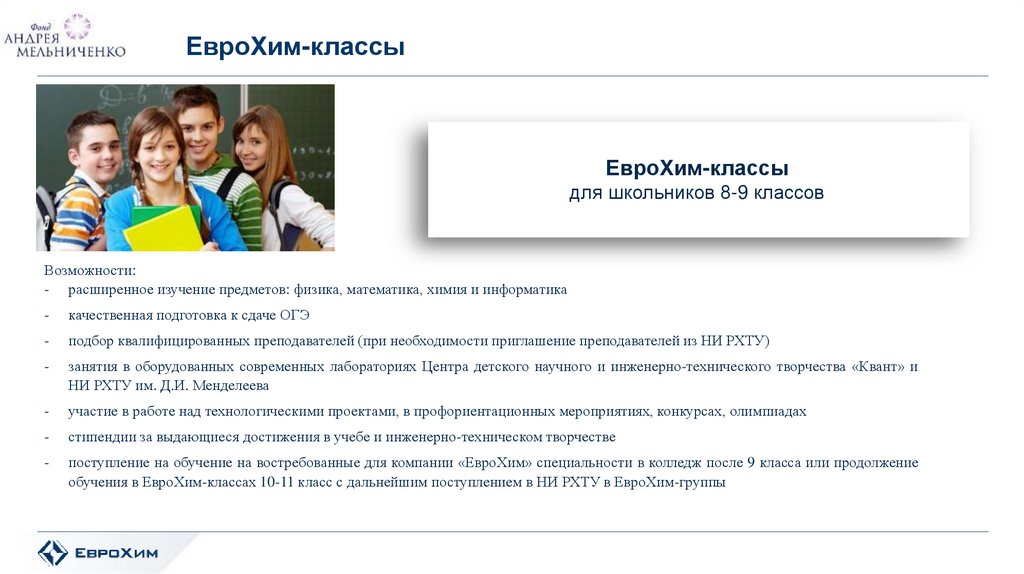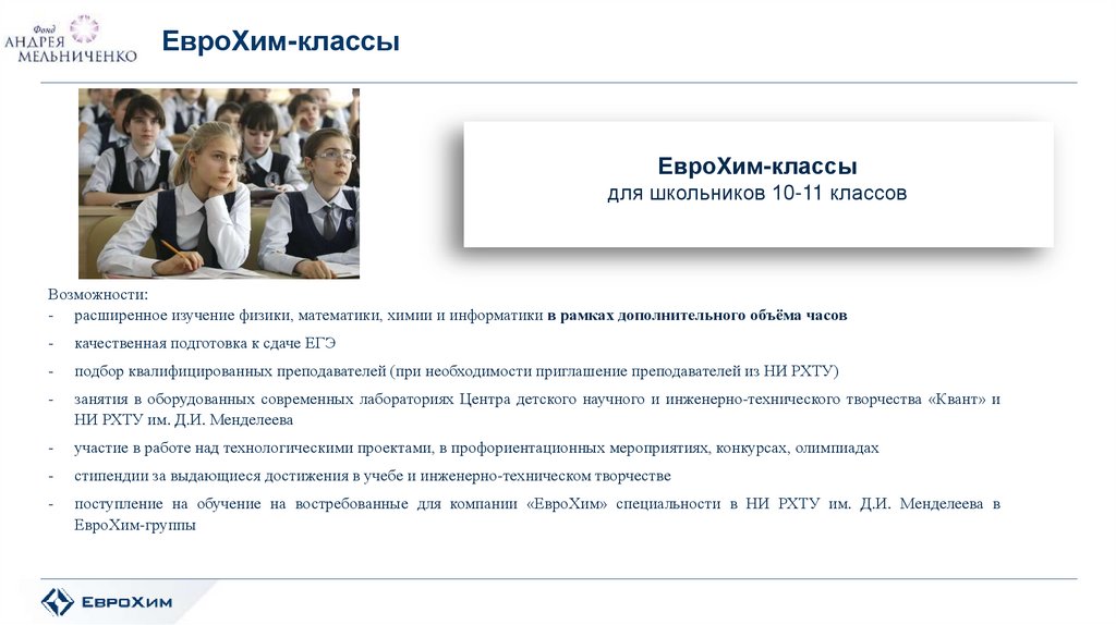 обучения в ЕвроХим-классах 10-11 класс с дальнейшим поступлением в НИ РХТУ в ЕвроХим-группы