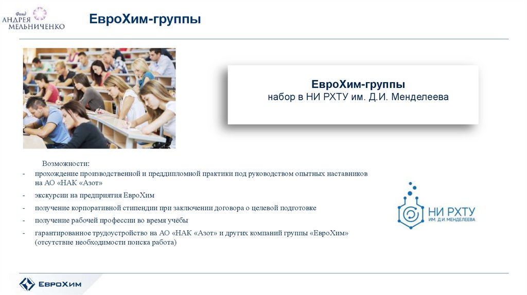 поступление на обучение на востребованные для компании «ЕвроХим» специальности в НИ РХТУ им. Д.И. Менделеева в