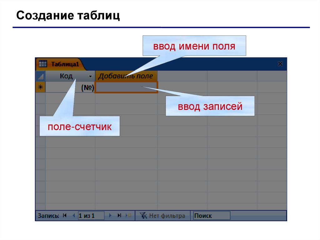 Создание таблицввод имени поля
