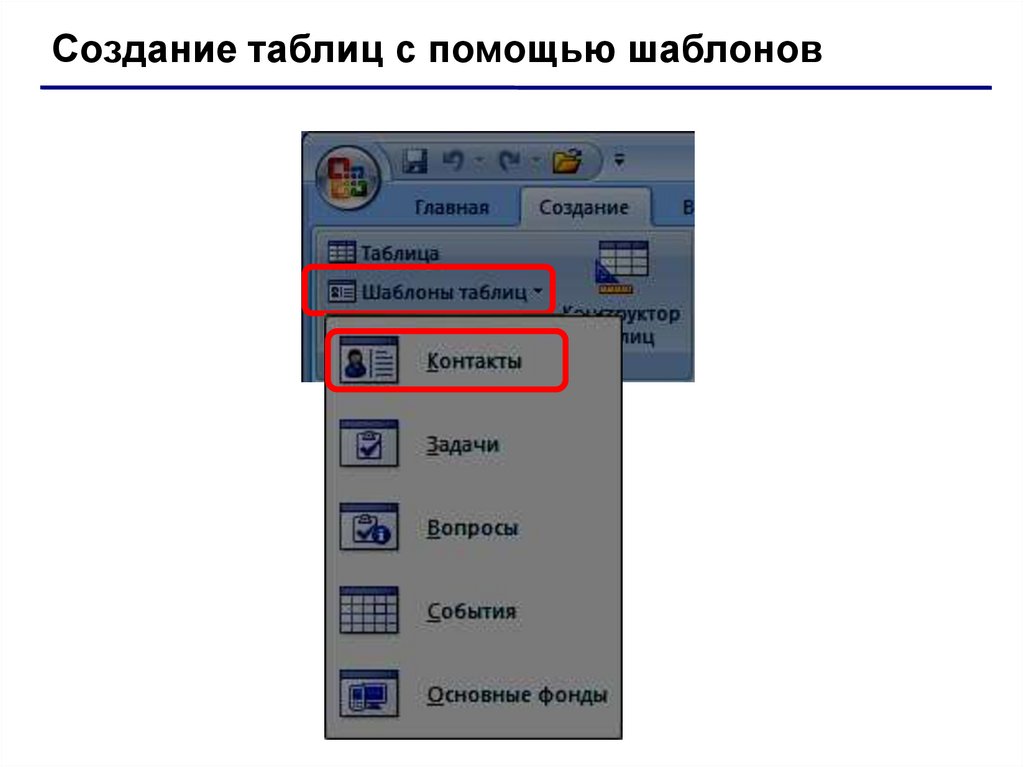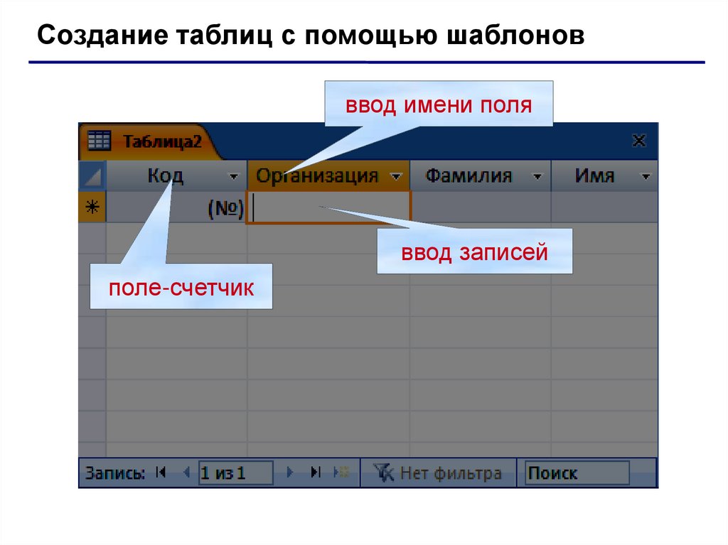 Создание таблиц с помощью шаблоновввод имени поля