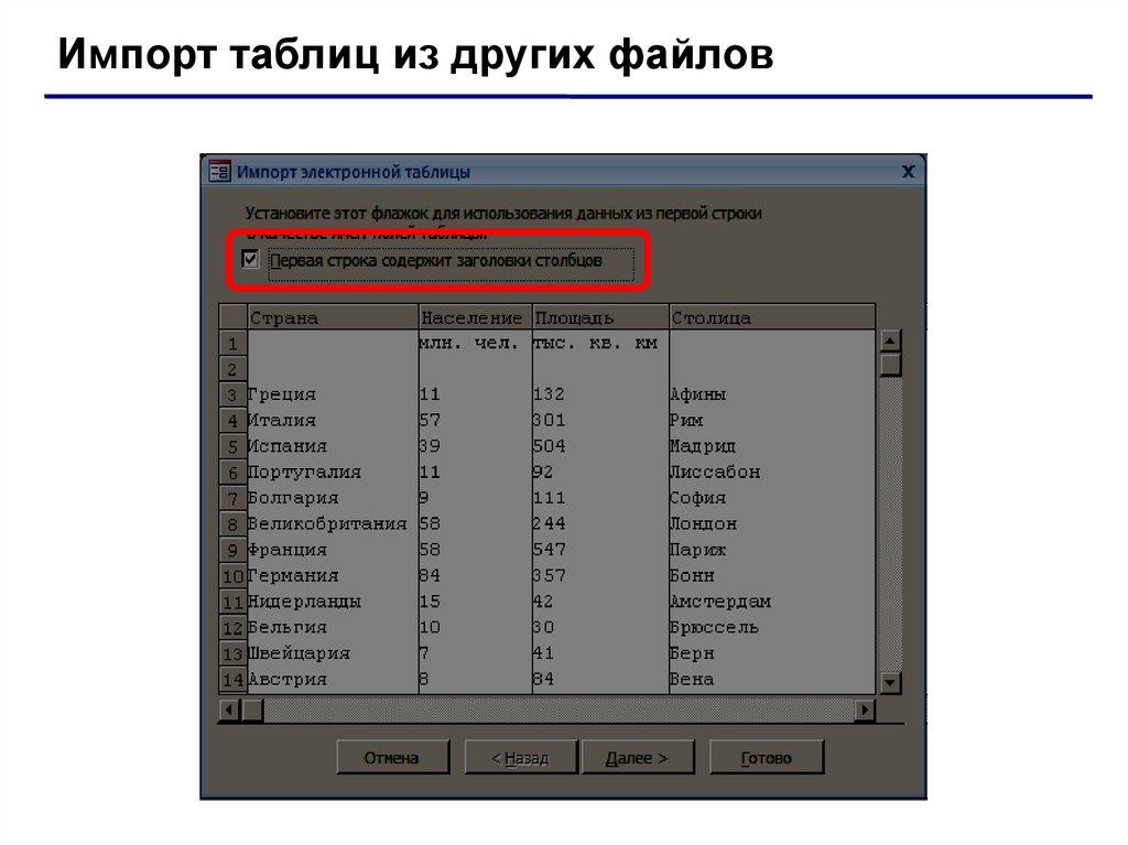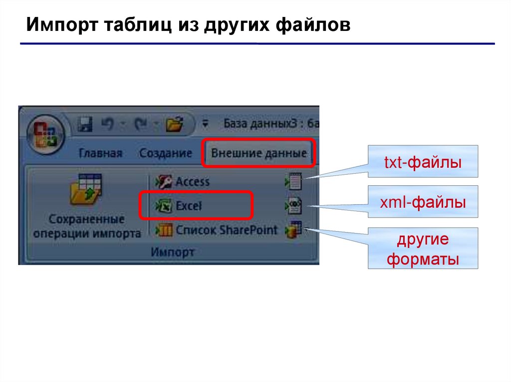 Импорт таблиц из других файловtxt-файлы