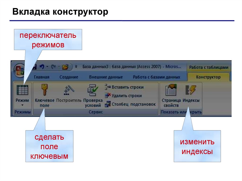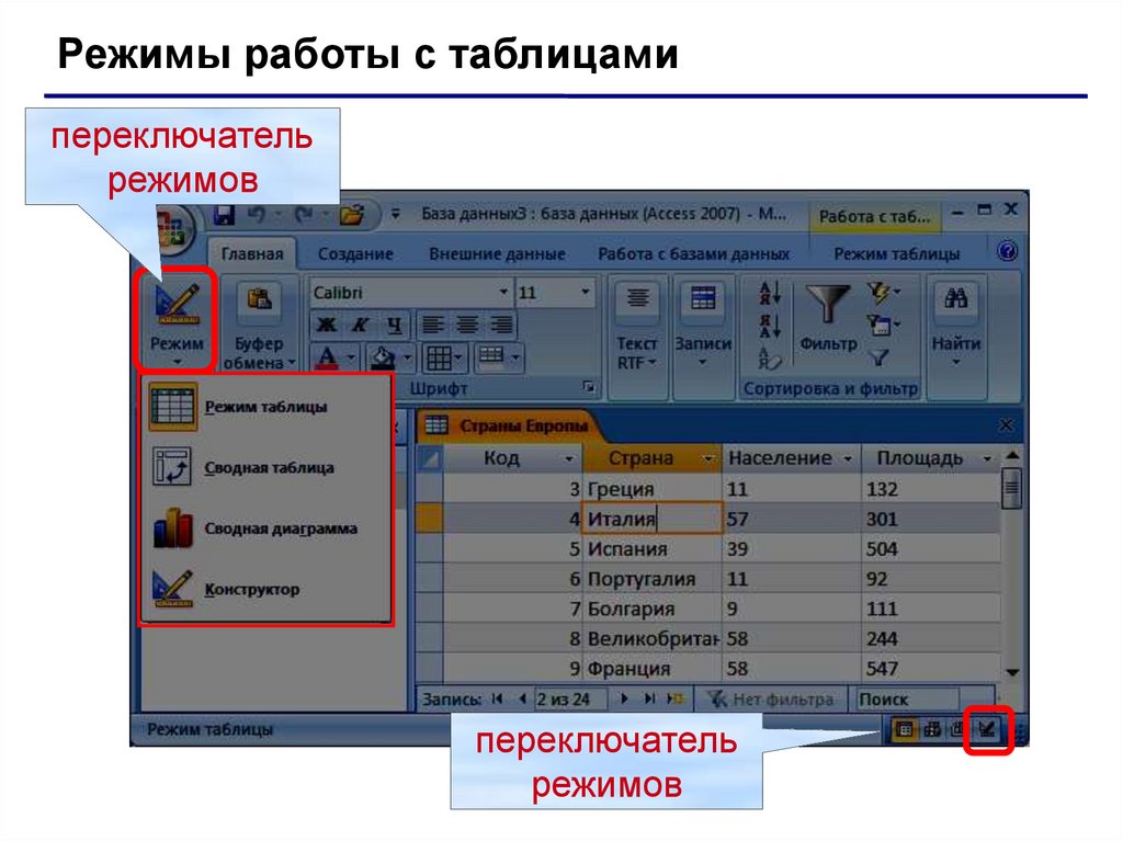 Режимы работы с таблицамипереключатель