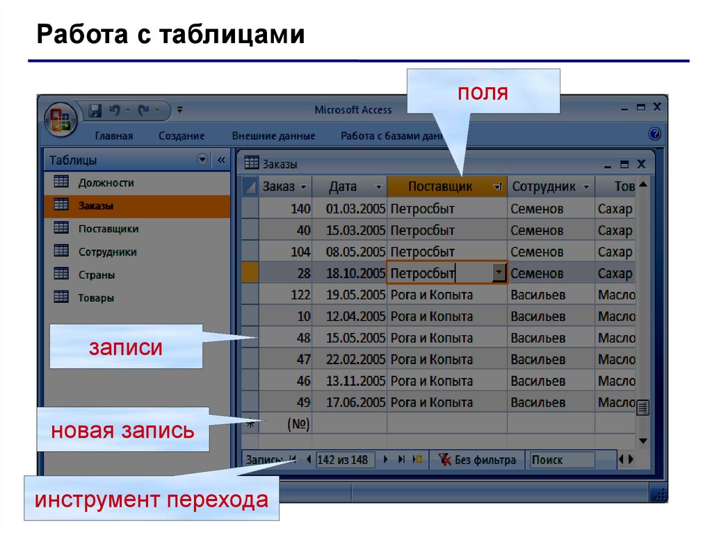 Работа с таблицамиполя