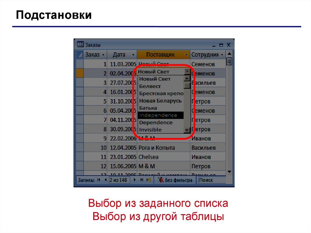 ПодстановкиВыбор из заданного списка