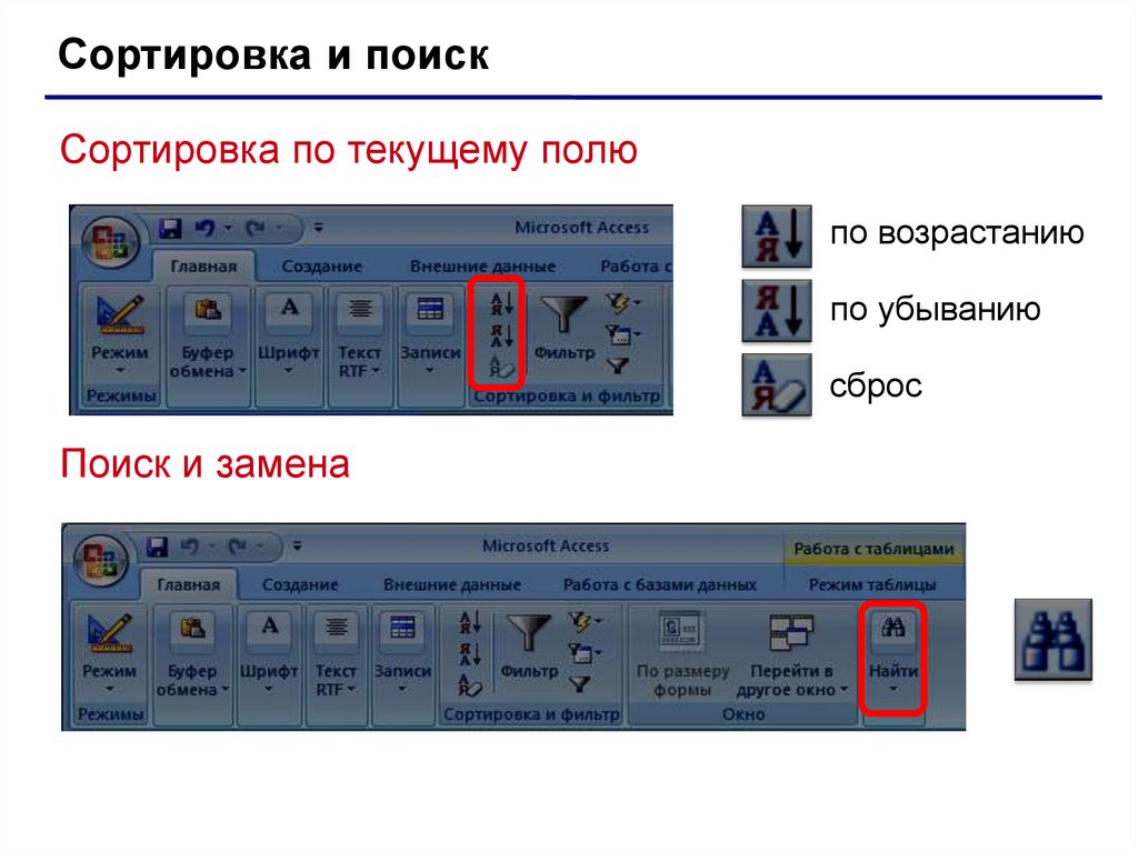 Сортировка и поискСортировка по текущему полю