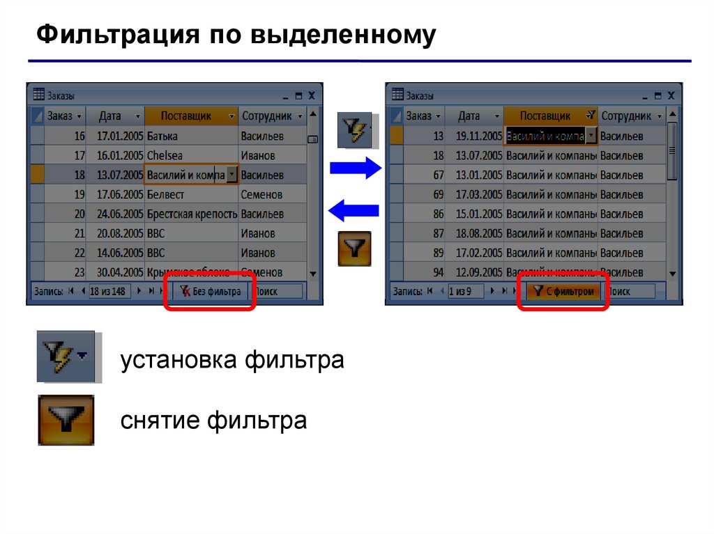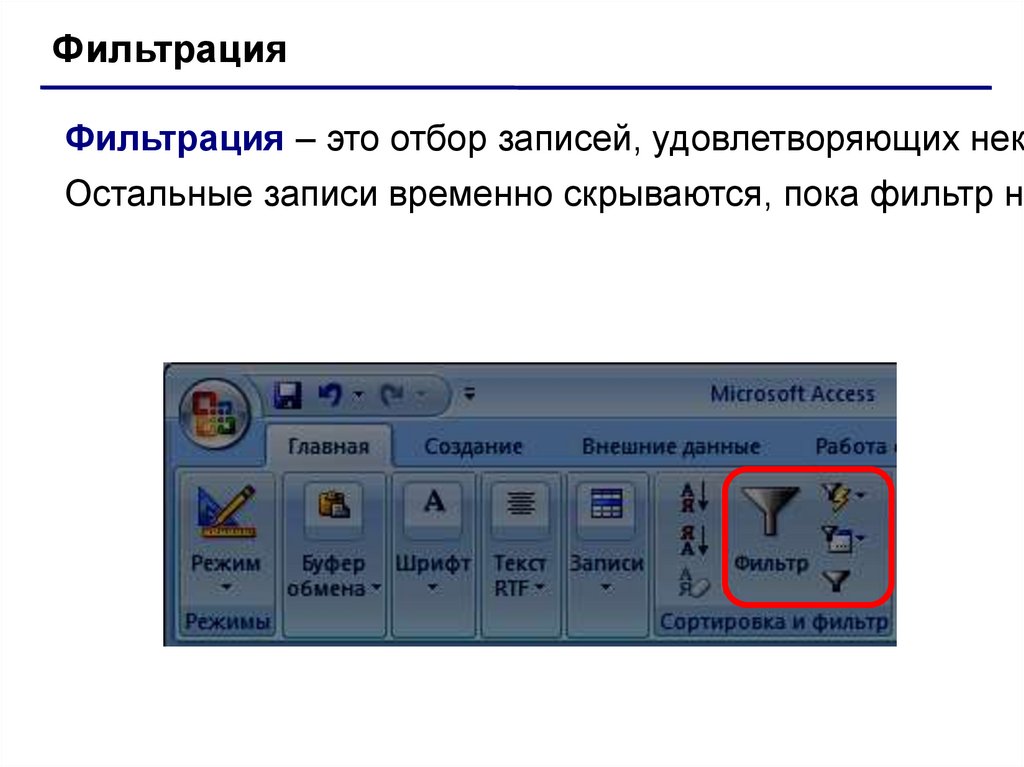 ФильтрацияФильтрация – это отбор записей, удовлетворяющих нек