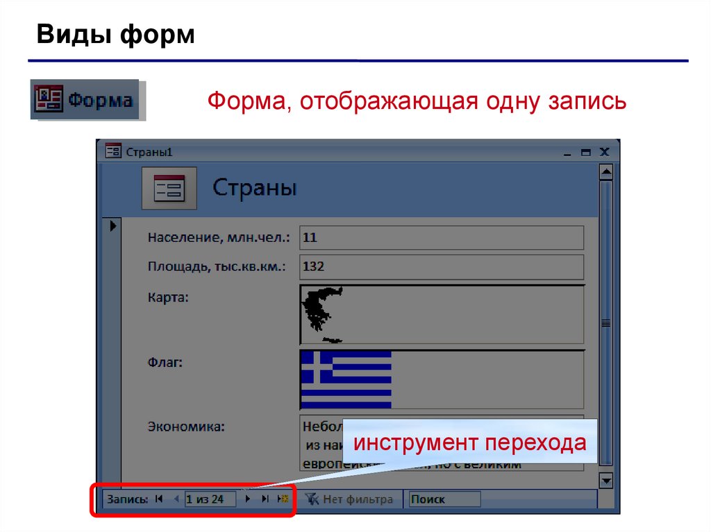 Виды формФорма, отображающая одну запись