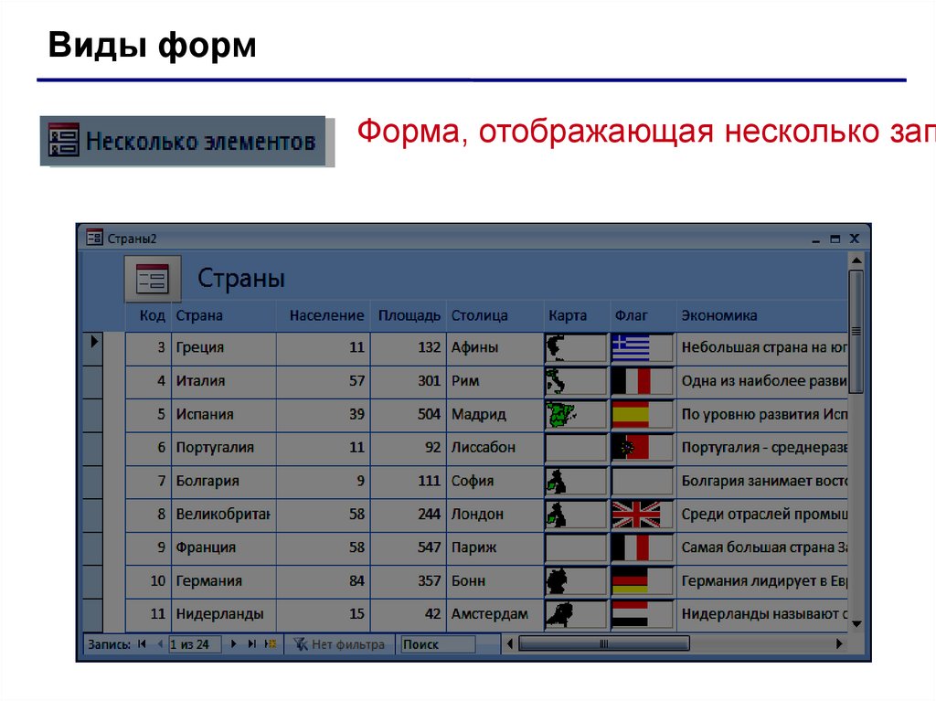 Виды формФорма, отображающая несколько зап