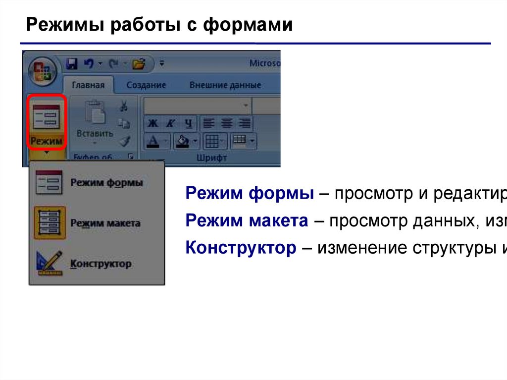 Режимы работы с формамиРежим формы – просмотр и редактир