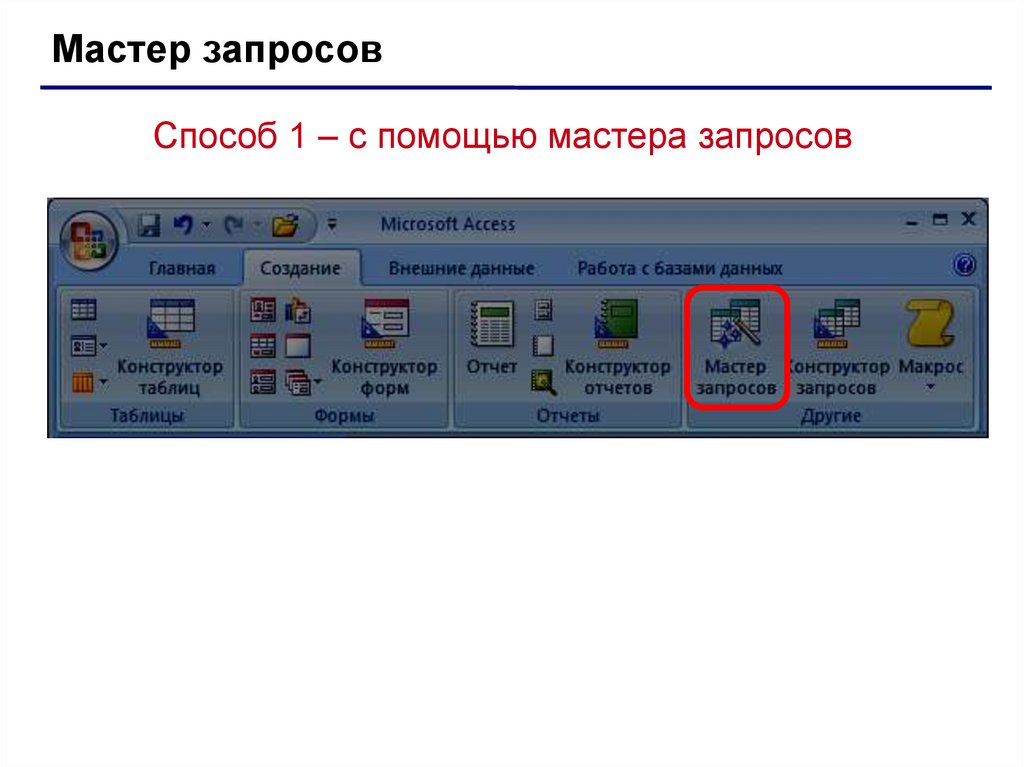 Мастер запросовСпособ 1 – с помощью мастера запросов