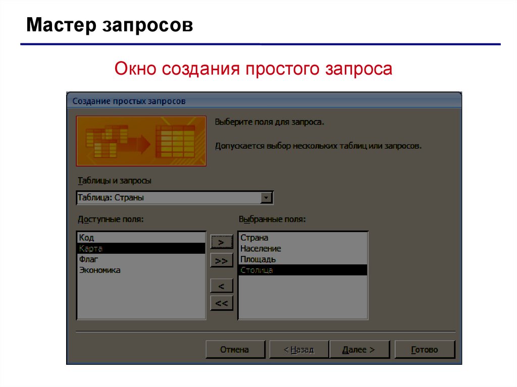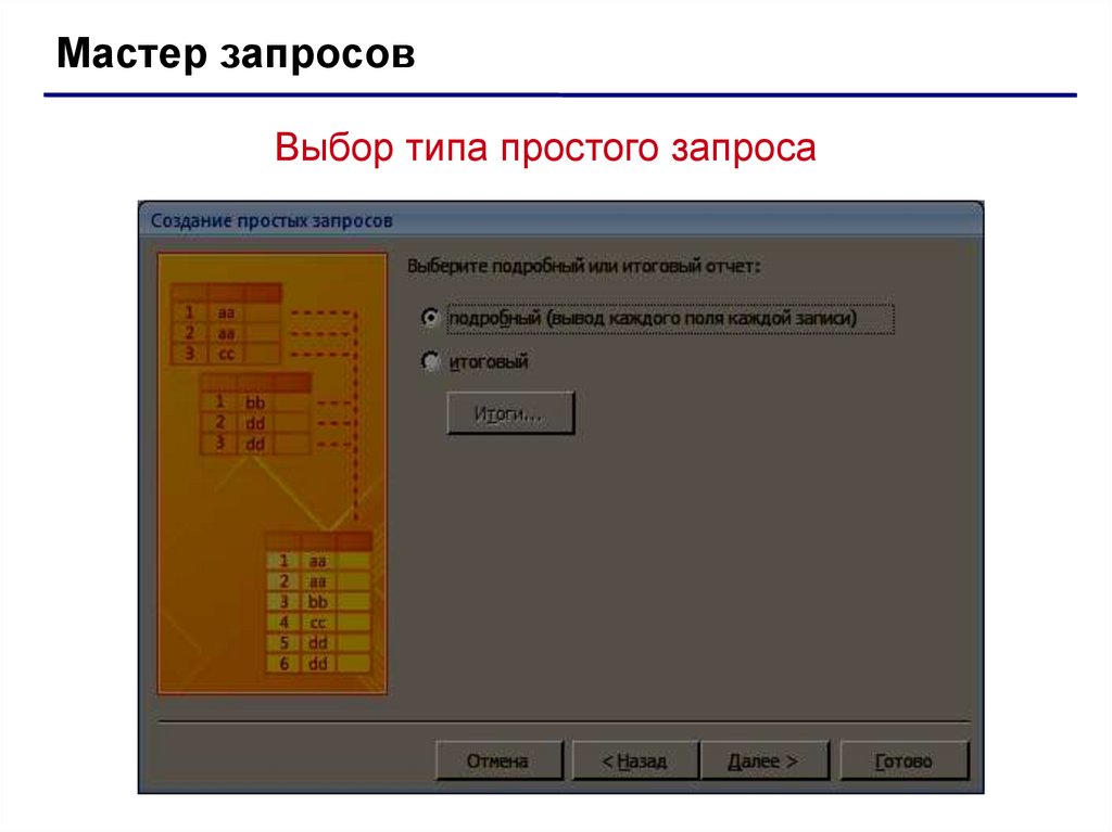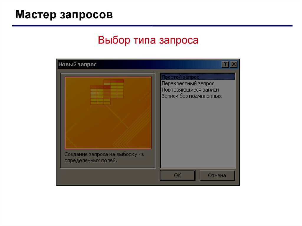 Мастер запросовВыбор типа простого запроса