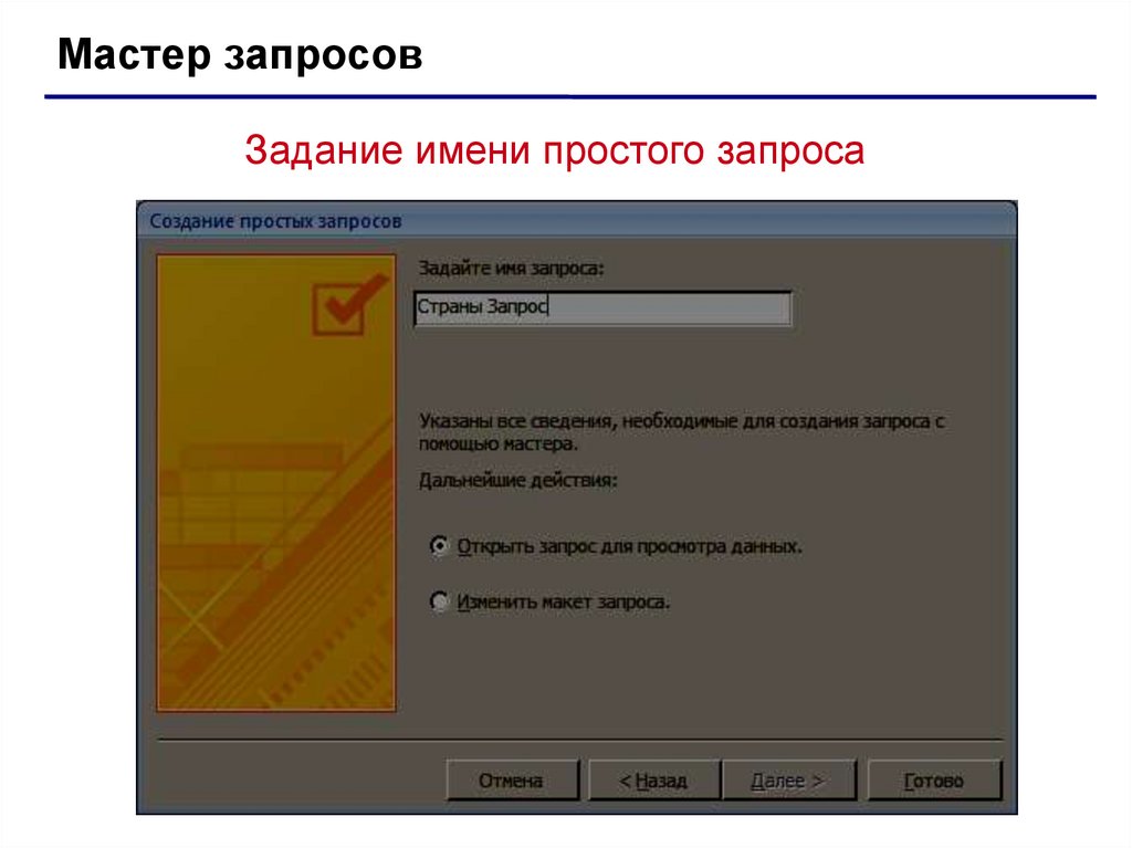 Мастер запросовЗадание имени простого запроса