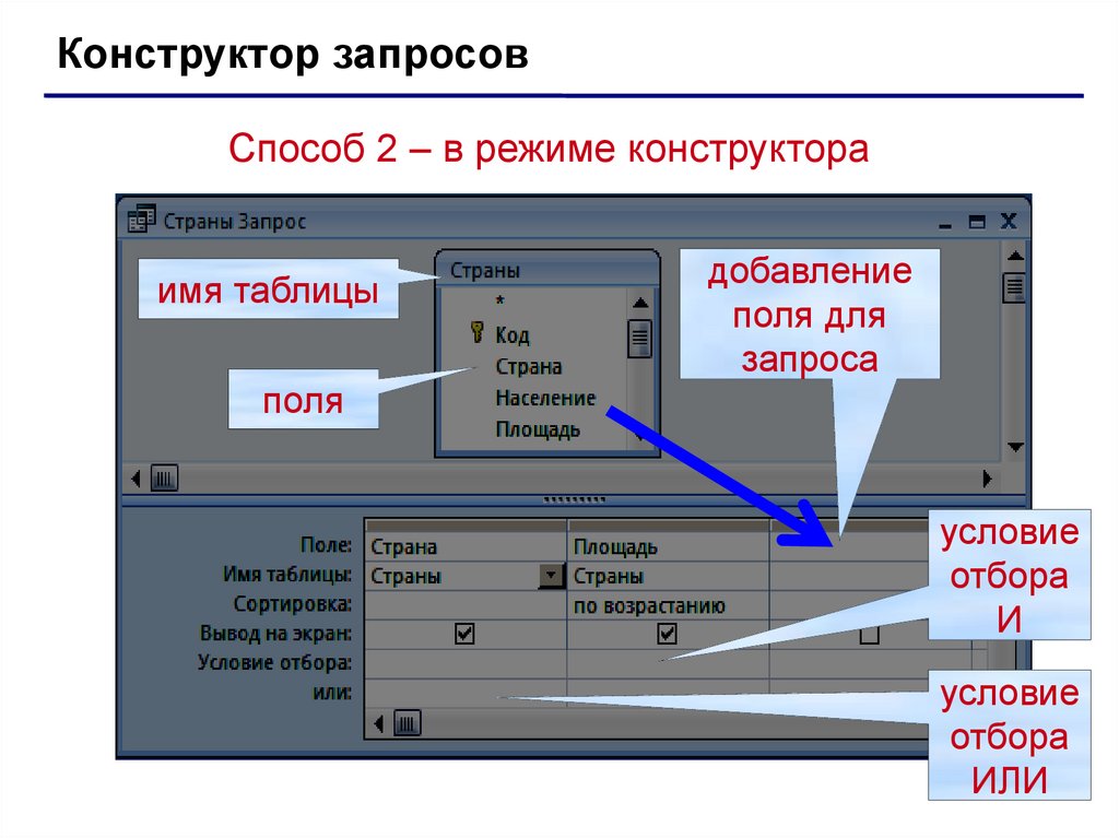 Конструктор запросовСпособ 2 – в режиме конструктора