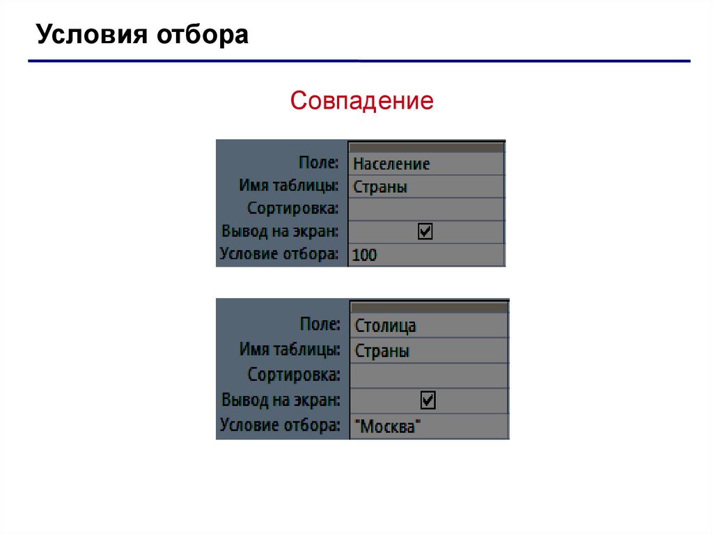 Условия отбораСовпадение