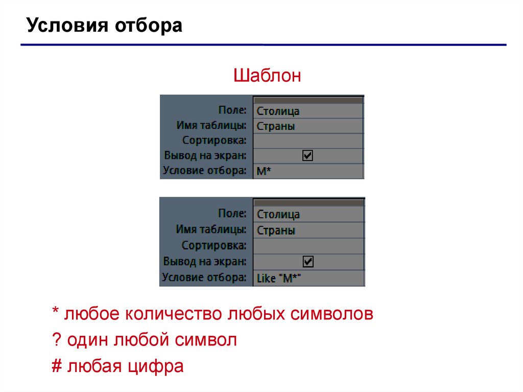 Условия отбораШаблон