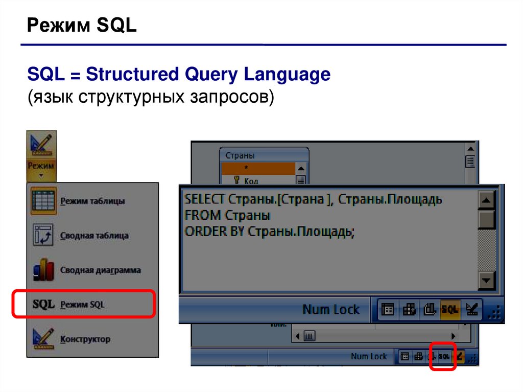 Режим SQLSQL = Structured Query Language