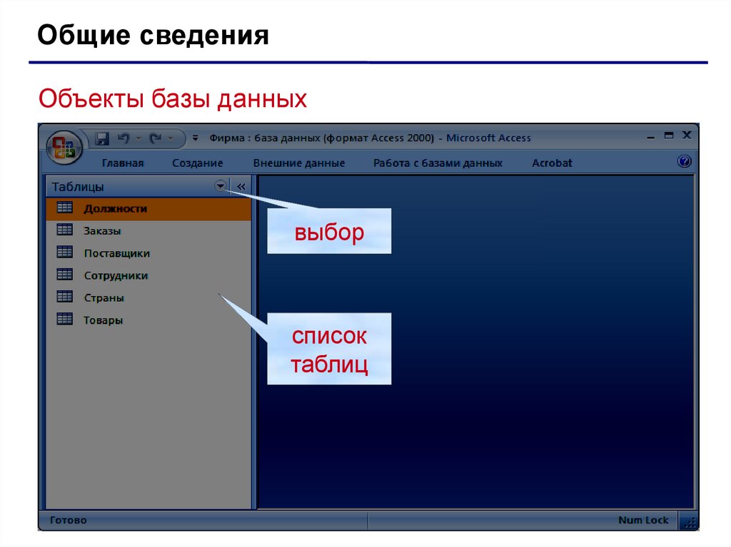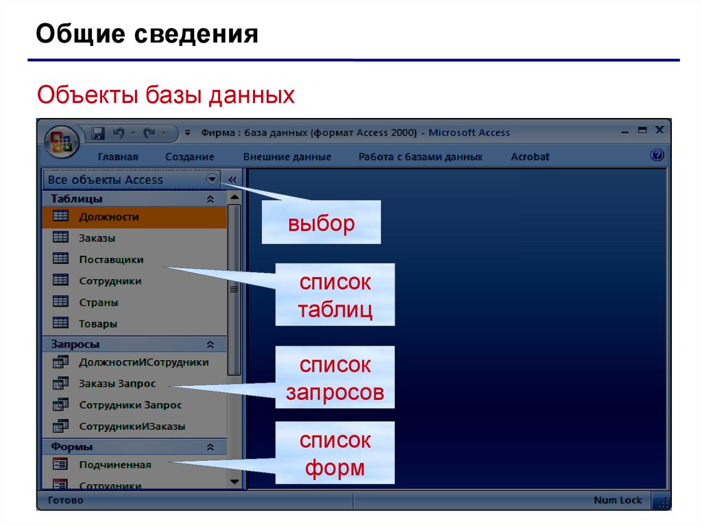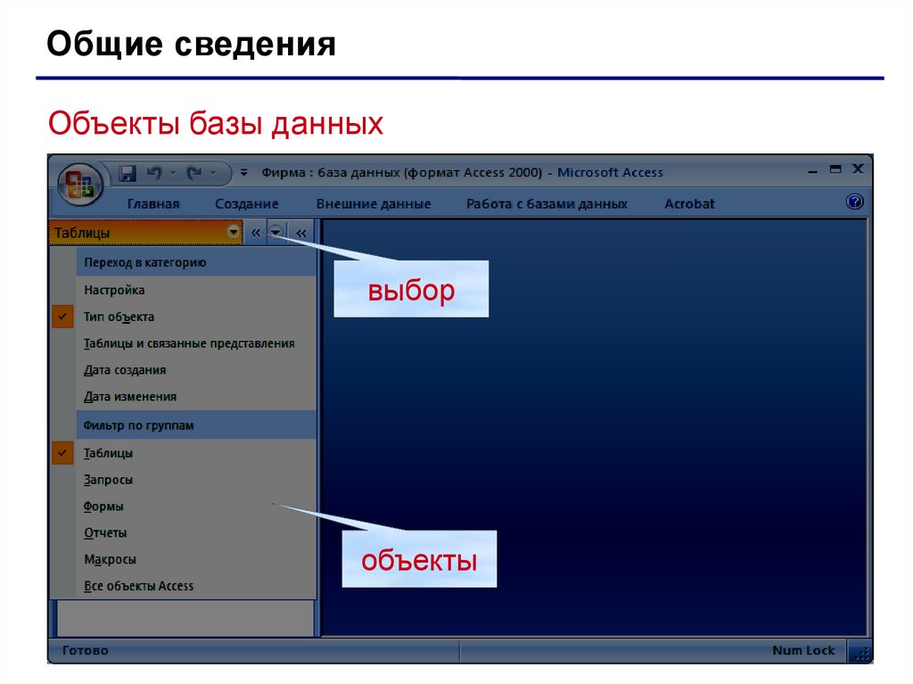 Общие сведенияОбъекты базы данных