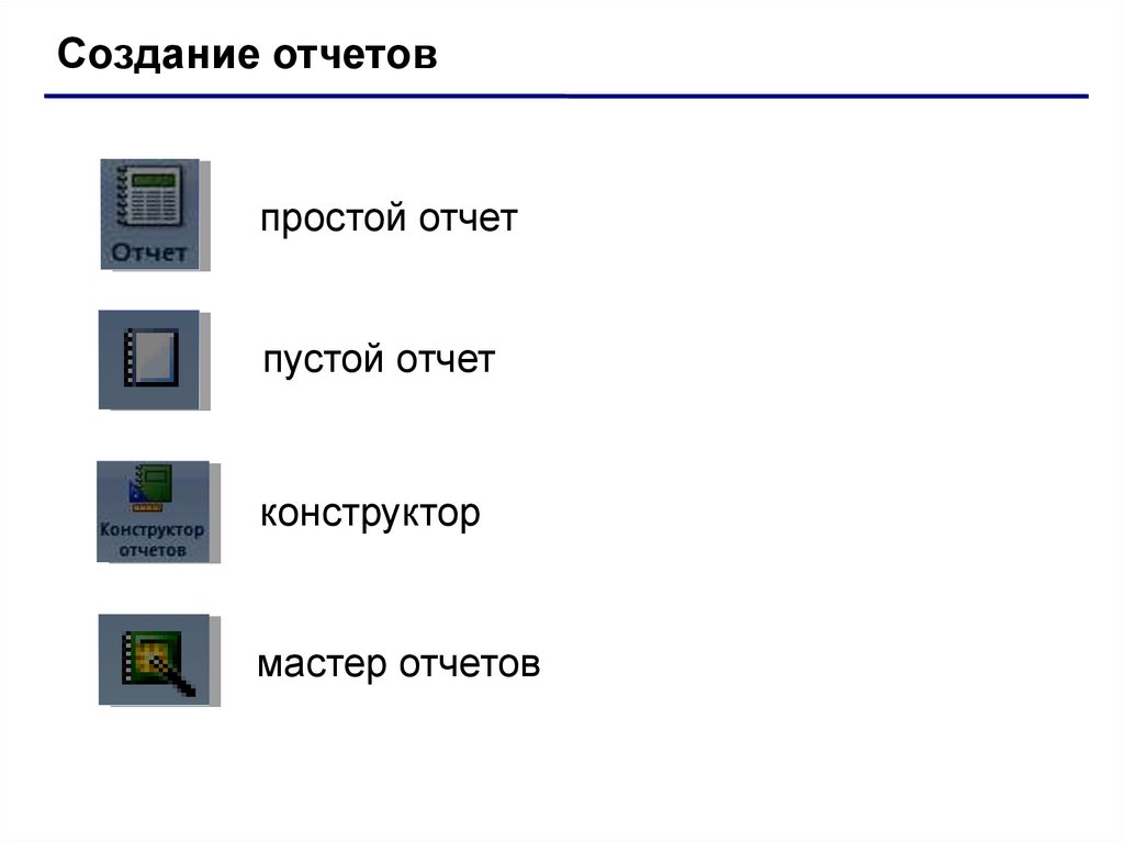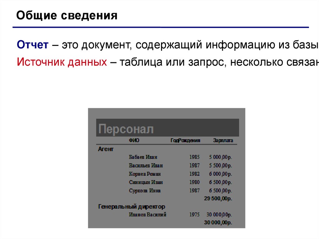 Общие сведенияОтчет – это документ, содержащий информацию из базы