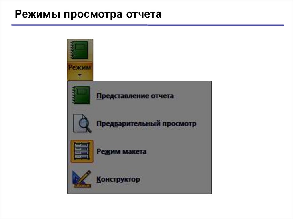 Режим макета – просмотр данных, изм
