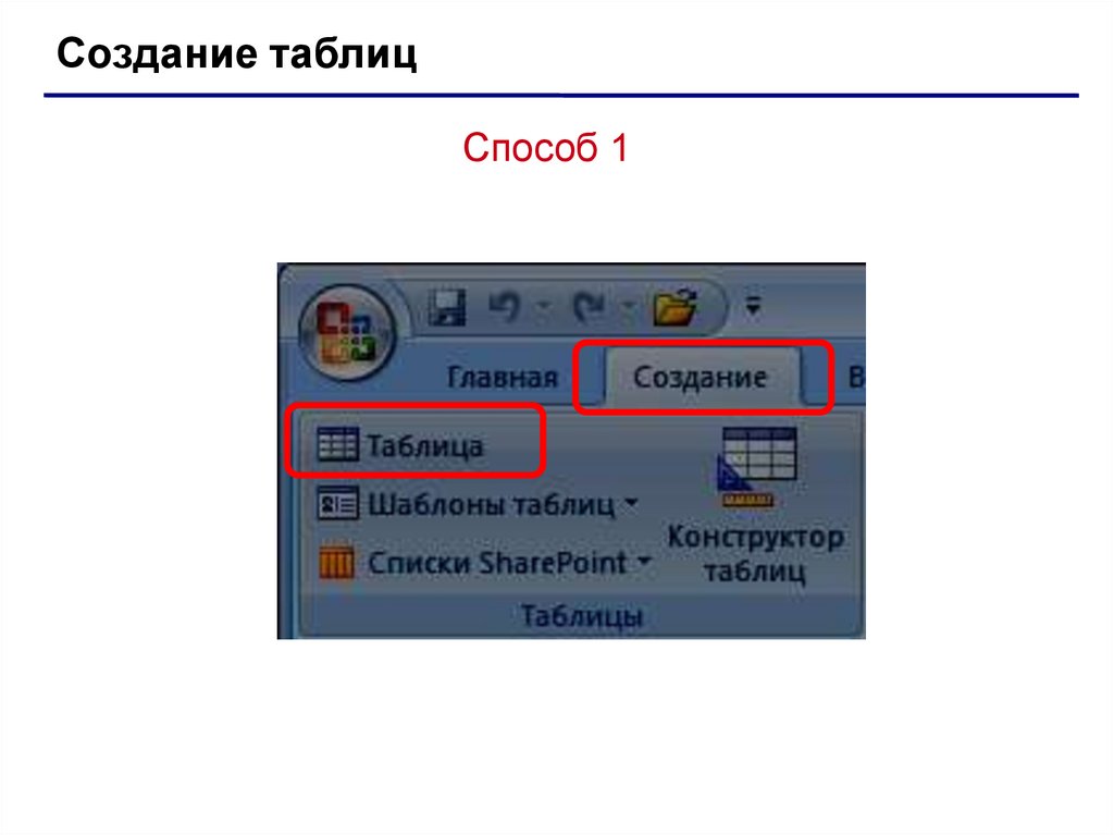 Создание таблицСпособ 1