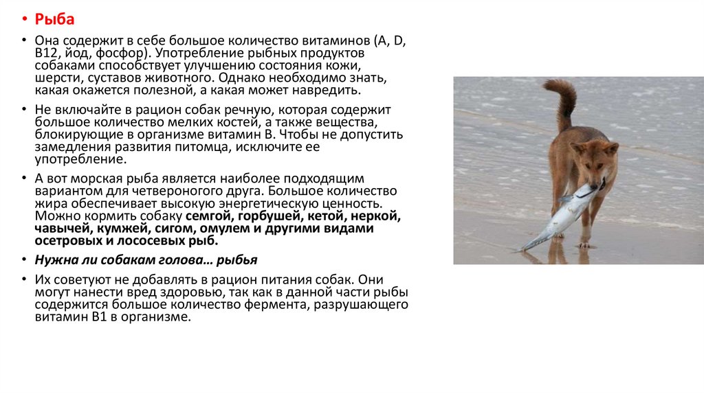 • Не включайте в рацион собак речную, которая содержит
