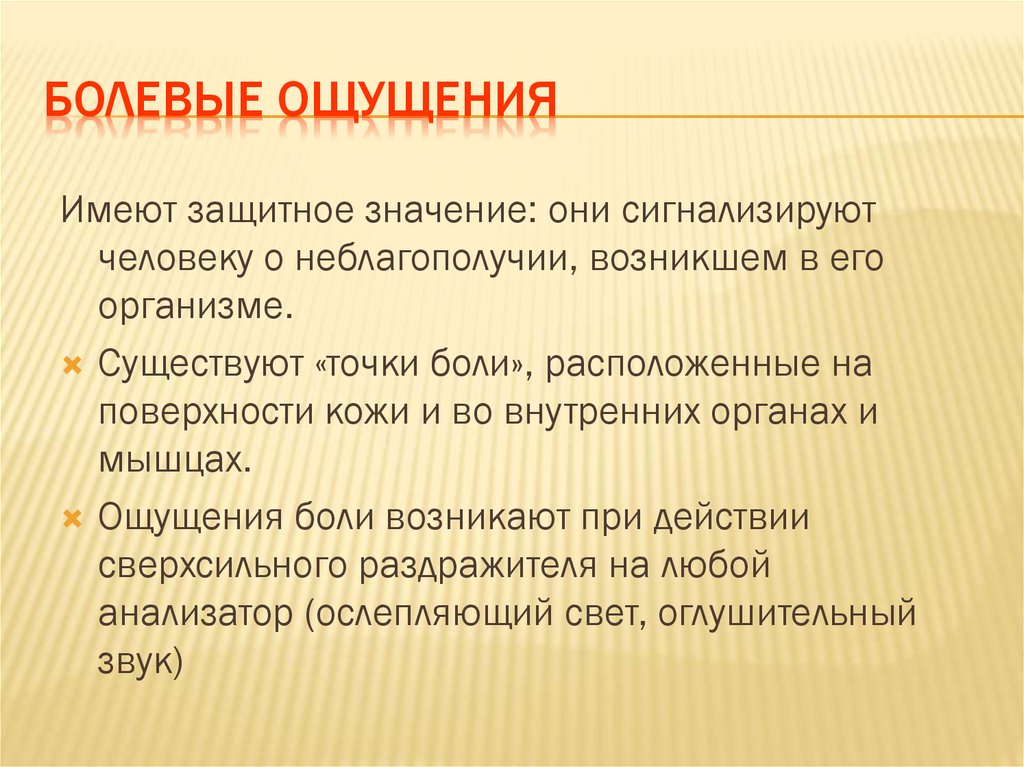 БОЛЕВЫЕ ОЩУЩЕНИЯИмеют защитное значение: они сигнализируют