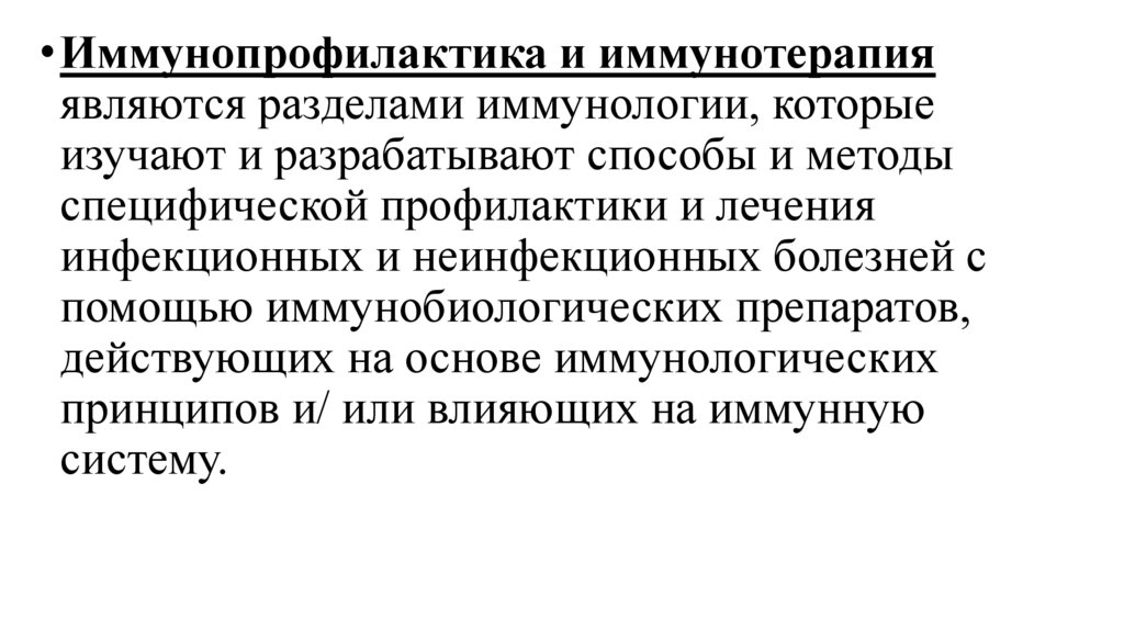 • Иммунопрофилактика и иммунотерапияявляются разделами иммунологии, которые