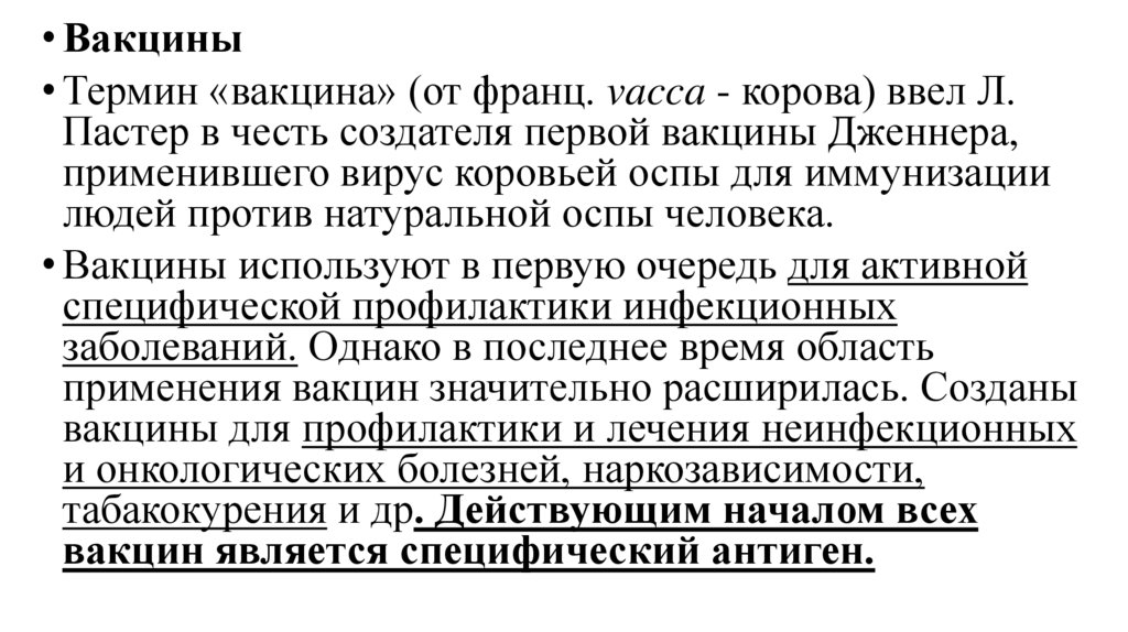 • Вакцины• Термин «вакцина» (от франц. vacca - корова) ввел Л.
