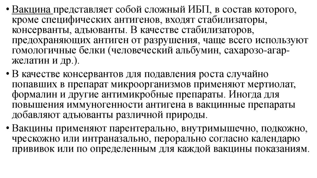 • Действующим началом ИБП являются антигены,