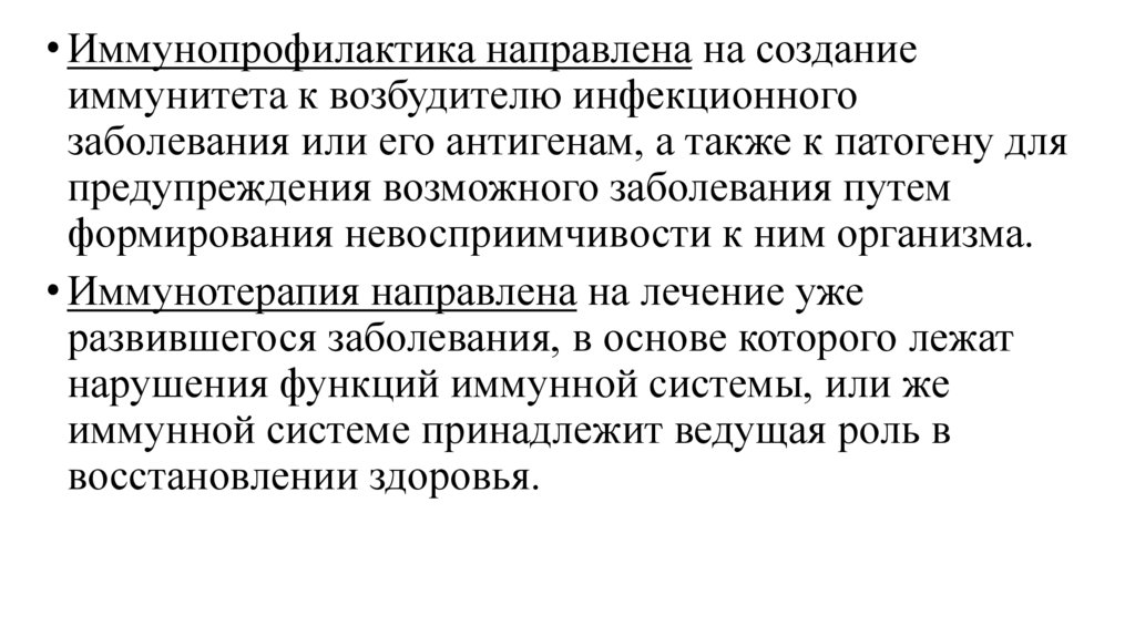 • Принцип иммунопрофилактики и иммунотерапии