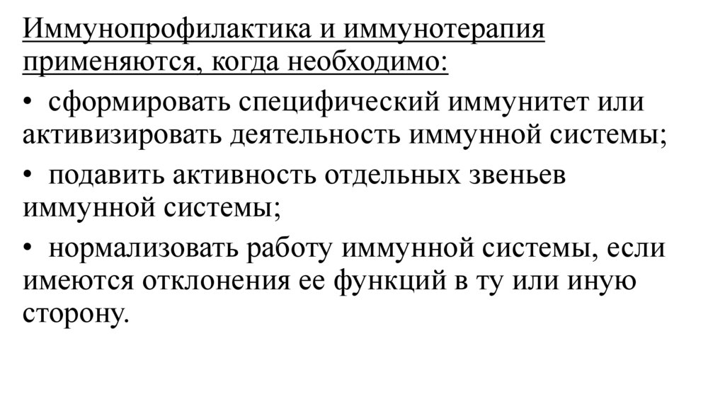Иммунопрофилактика и иммунотерапияприменяются, когда необходимо: