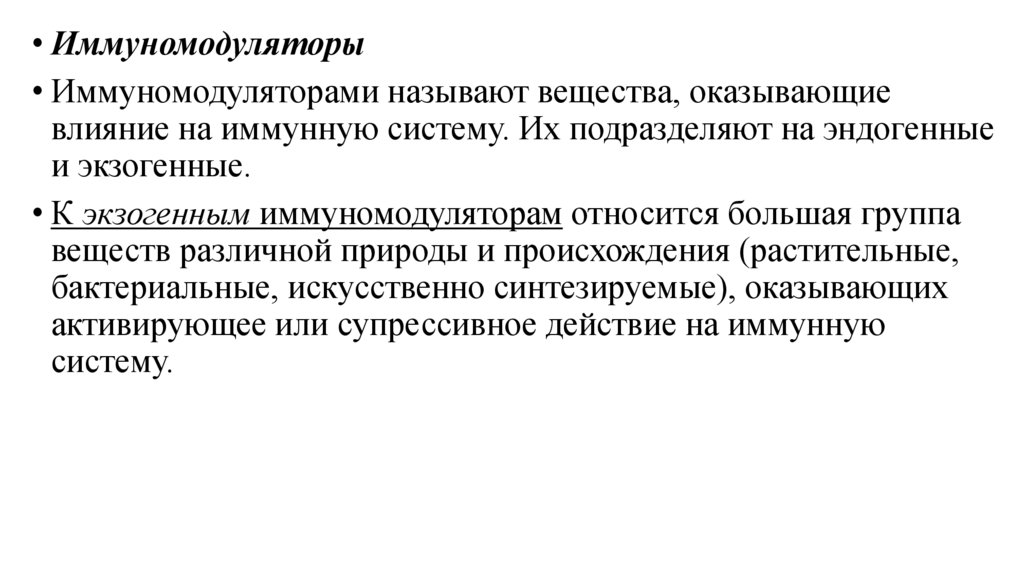 • Иммуномодуляторы• Иммуномодуляторами называют вещества, оказывающие