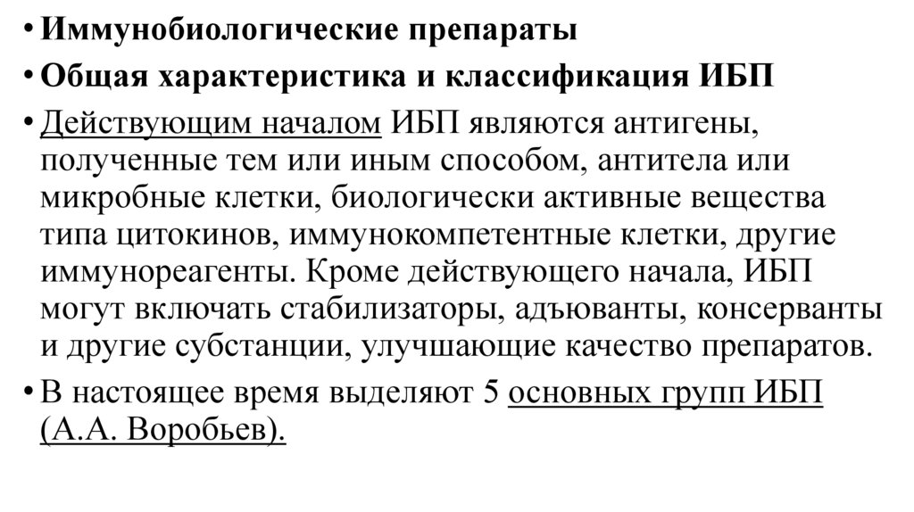 • Иммунобиологические препараты• Общая характеристика и классификация ИБП