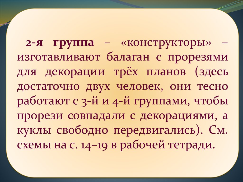 2-я группа – «конструкторы» –изготавливают балаган с прорезями