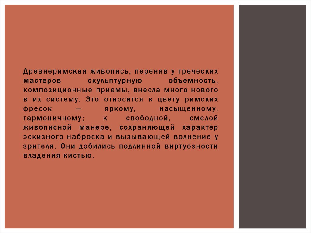 Яркой особенностью искусства Рима является еготеснейшая связь с жизнью. В художественных памятниках
