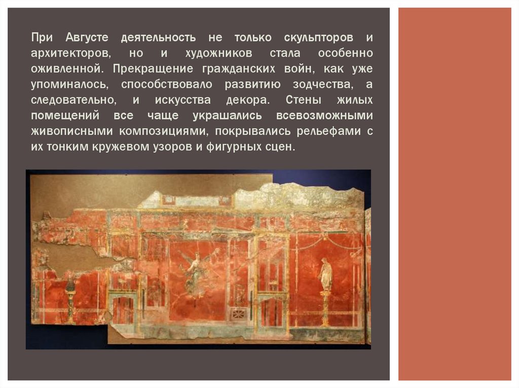 При Августе деятельность не только скульпторов иархитекторов, но и художников стала особенно