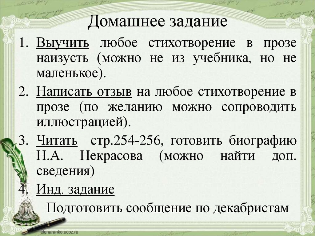 Домашнее задание1. Выучить любое стихотворение в прозе