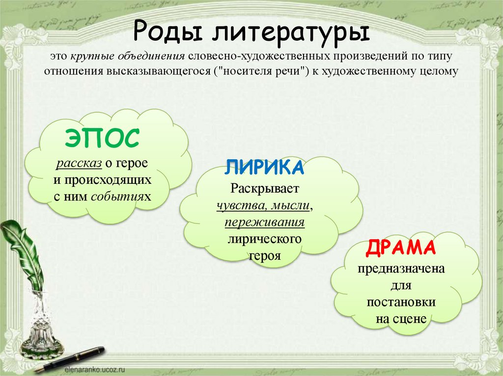 Роды литературыэто крупные объединения словесно-художественных произведений по типу