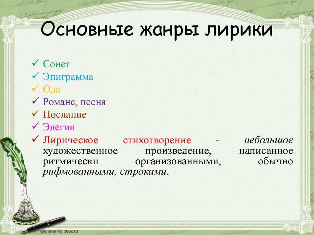 Основные жанры лирикиСонет