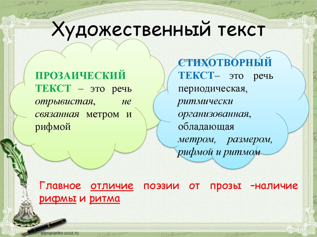Художественный текстПРОЗАИЧЕСКИЙ