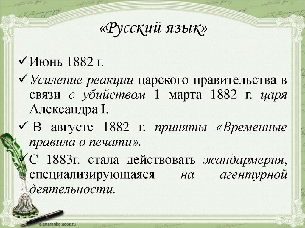 «Русский язык»Июнь 1882 г.