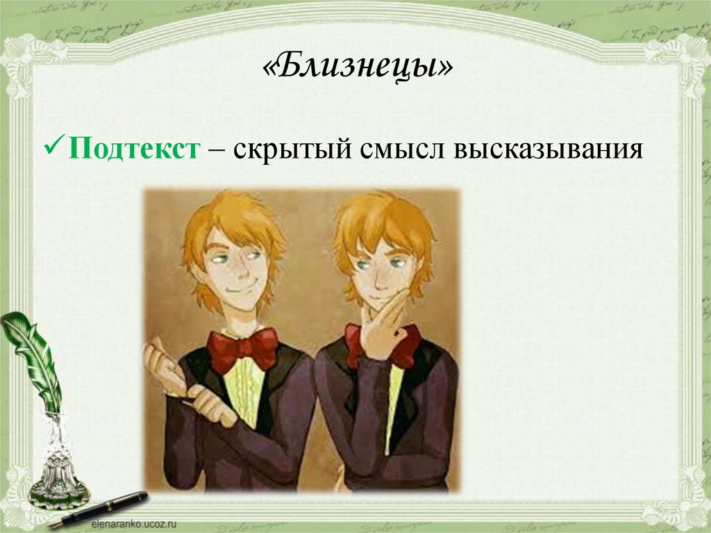 «Близнецы»Подтекст – скрытый смысл высказывания