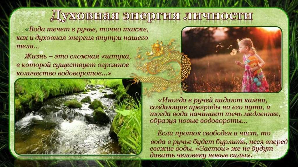 «Вода течет в ручье, точно также,как и духовная энергия внутри нашего