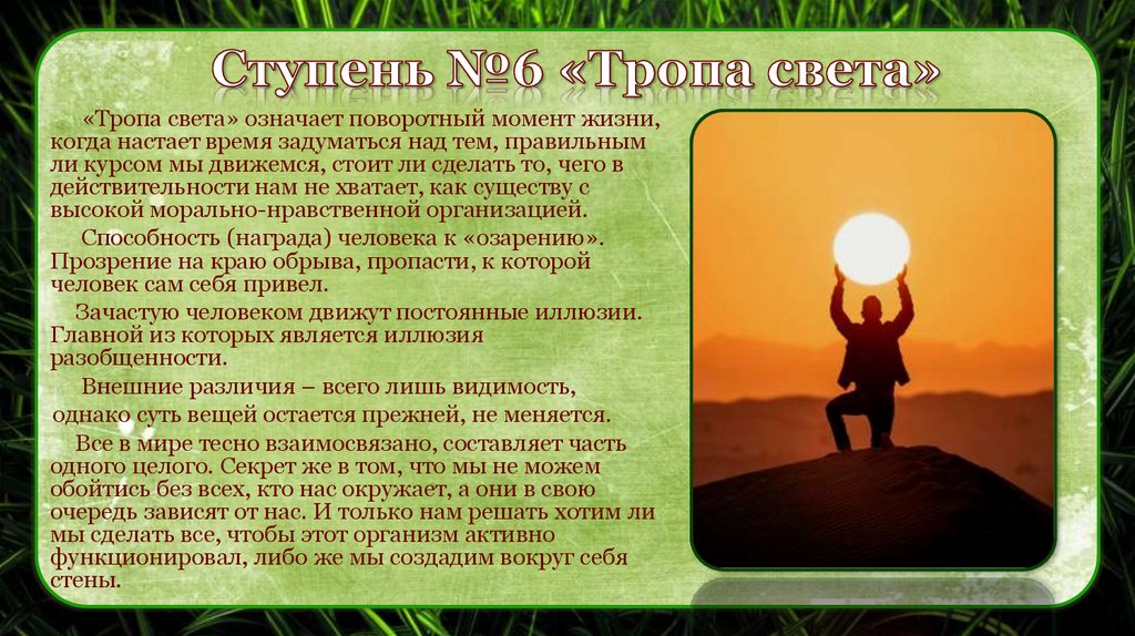 «Тропа света» означает поворотный момент жизни,когда настает время задуматься над тем, правильным