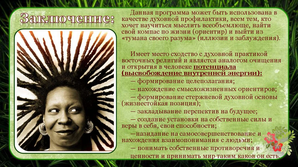 Данная программа может быть использована вкачестве духовной профилактики, всем тем, кто