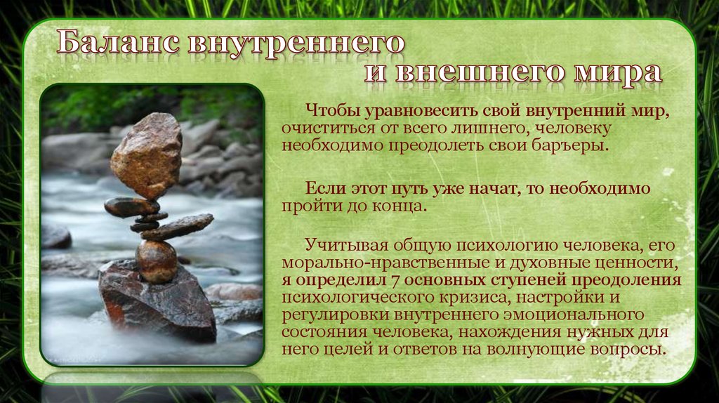 Чтобы уравновесить свой внутренний мир,очиститься от всего лишнего, человеку
