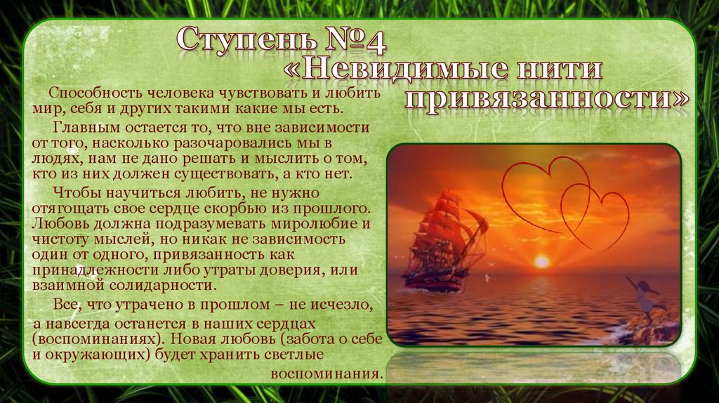 Данная ступень предполагаетспособность радоваться жизни, данная